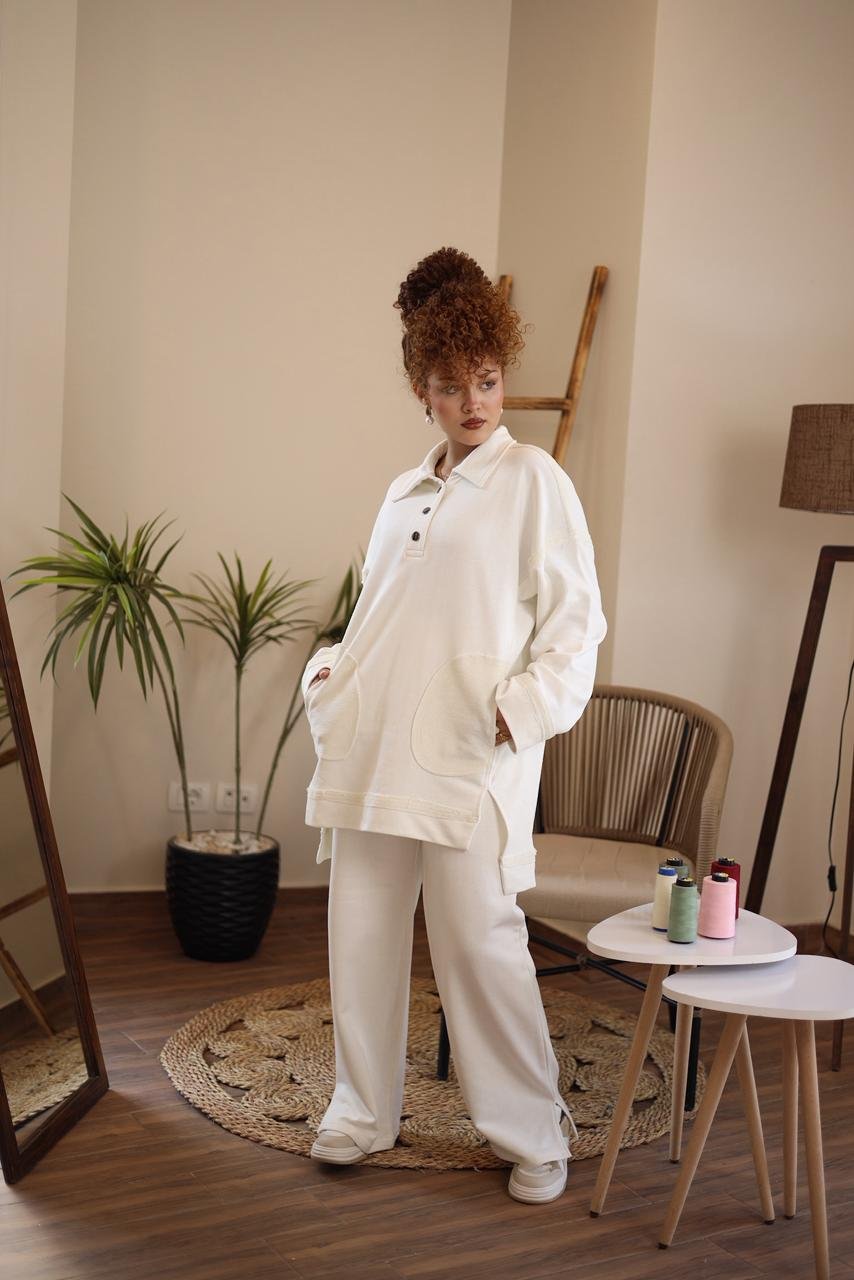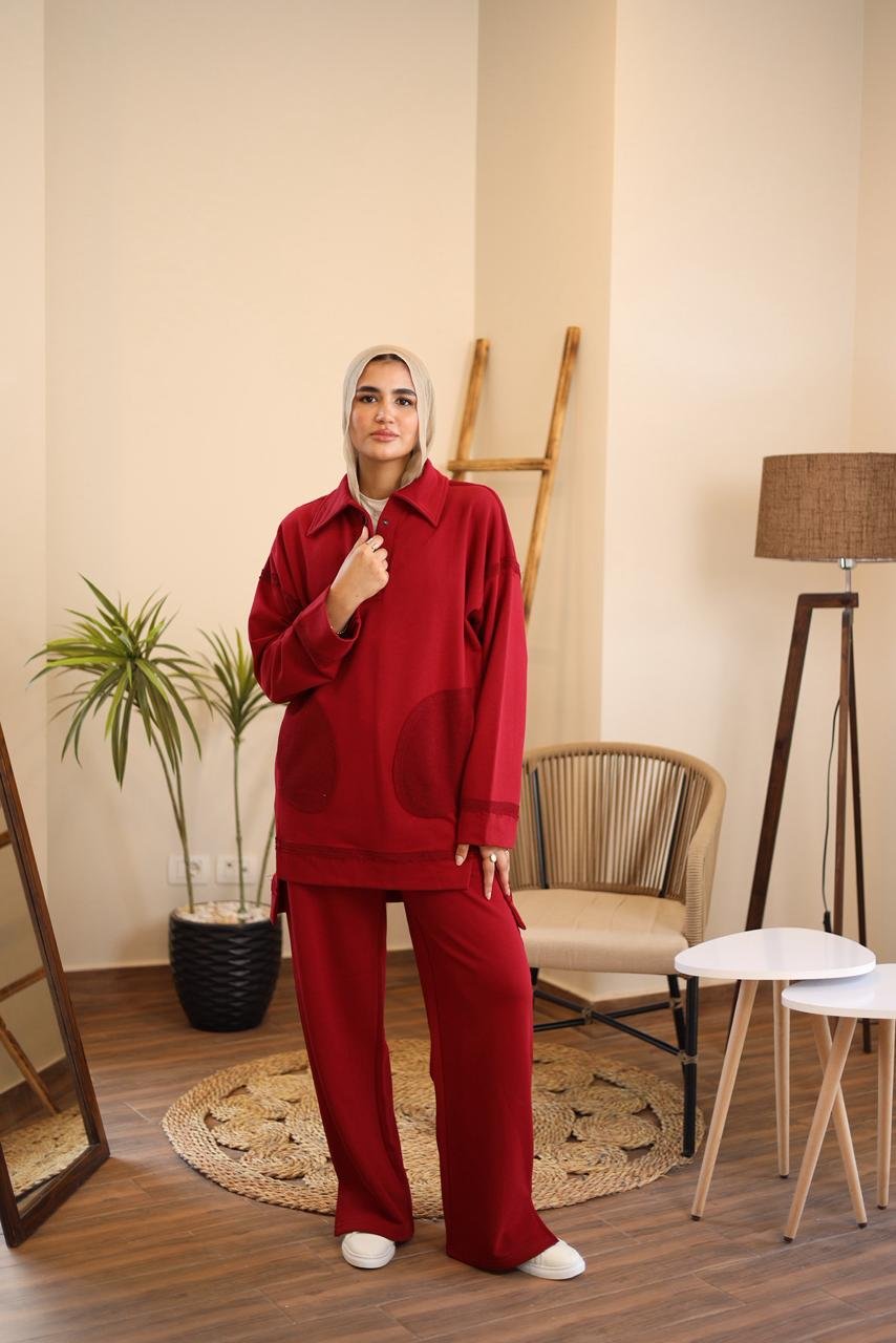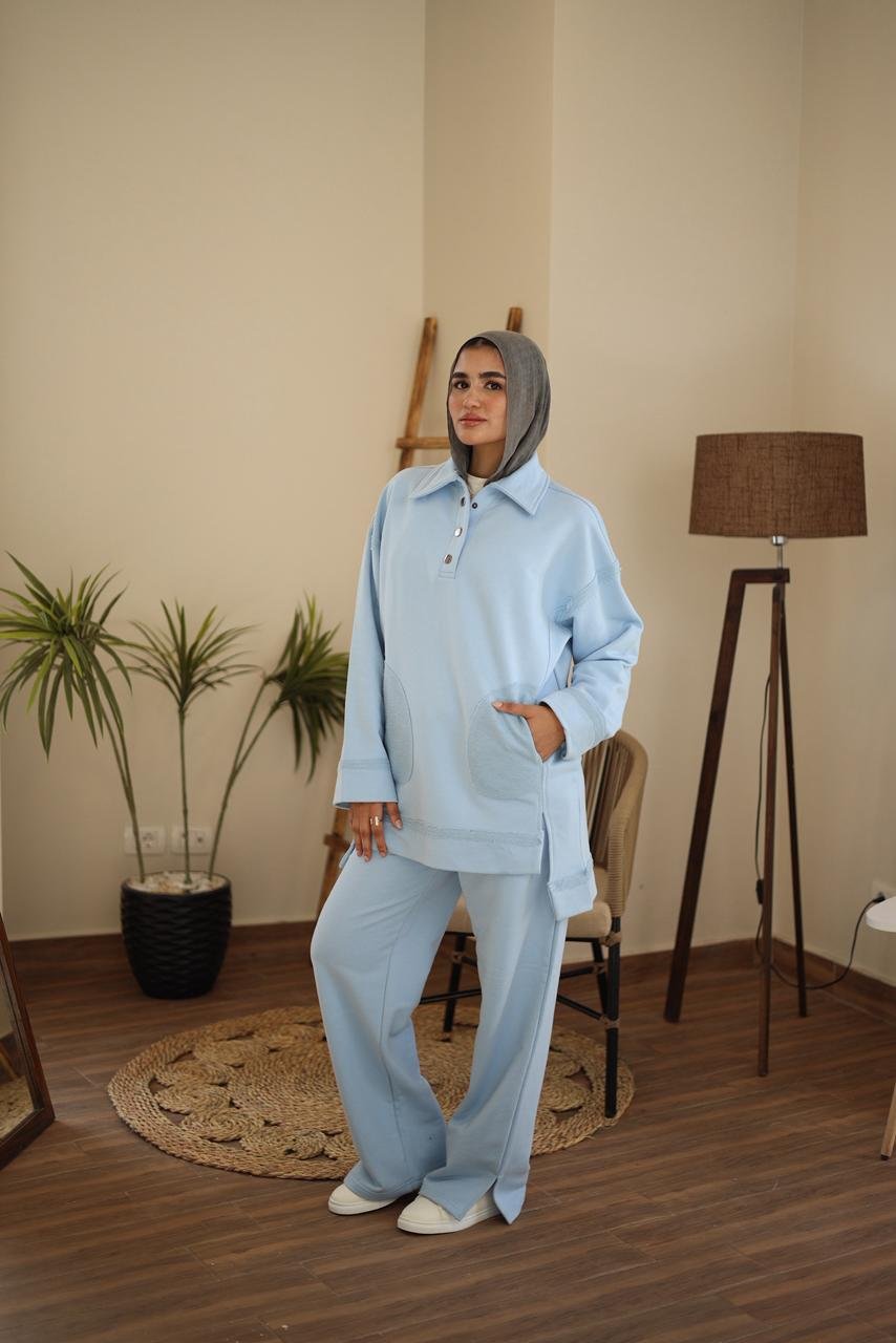 cotton suit مصنوع من القطن عالي الجودة مضاف الي لمسة عصرية يضيف اليكي مزيدا من الراحة